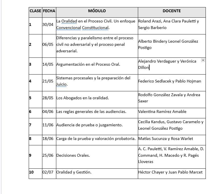 Curso Virtual de Posgrado: Oralidad en el Proceso Civil