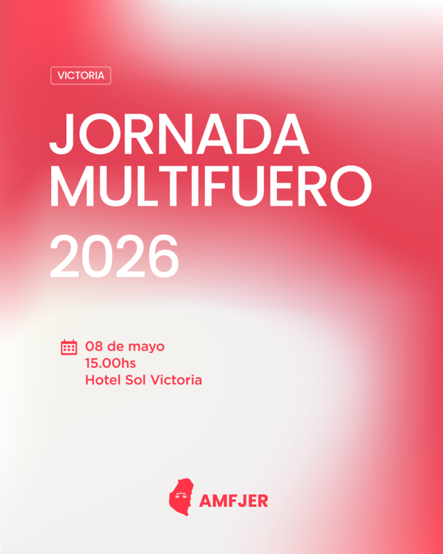 Invitamos a todos y todas a participar de la JORNADA MULTIFUERO 2026 organizada por la Asociación de la Magistratura y la Funciòn Judicial de Entre Ríos, que se llevarà a cabo el día 8 de mayo del corriente año en la ciudad de Victoria